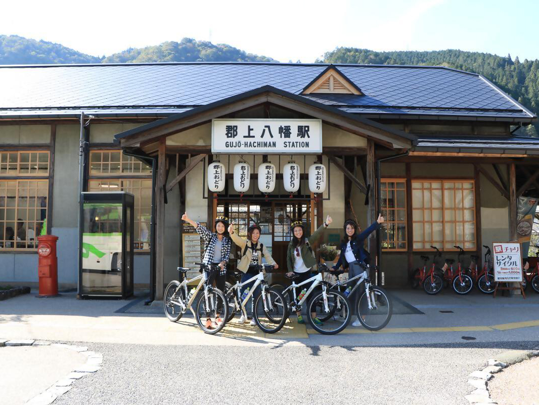 Uncover the multifaceted beauty of Gujo Hachiman in this e-bike cycling tour that starts and ends at Gujo Hachiman Station. The course distance is about 30km.