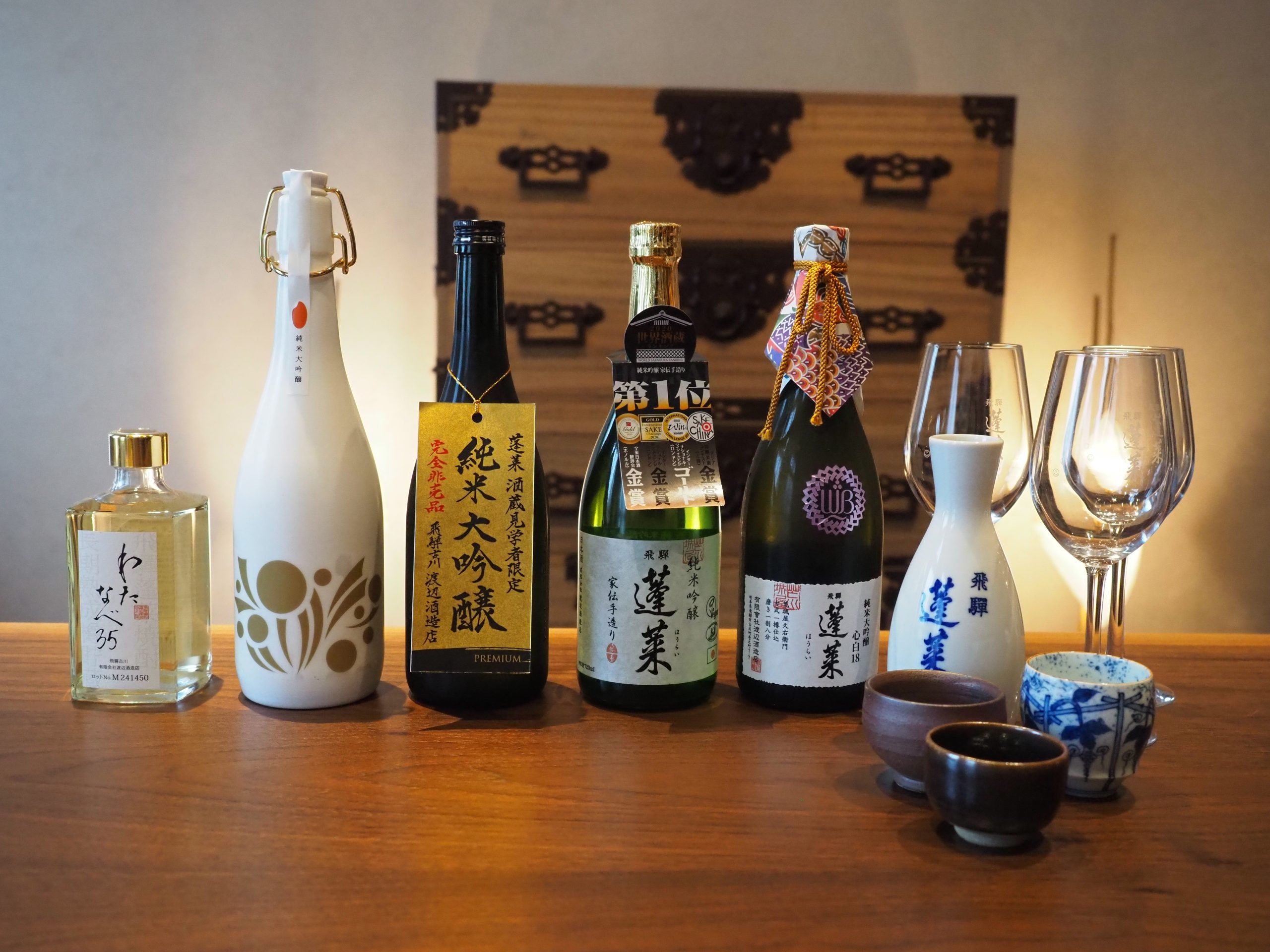 明治三年,渡邊家的五代目因為在京都嚐到一口忘不了的美酒,決定回到故鄉飛驒,開啟了釀酒人生。這份執著,孕育了如今名聲遠播的銘柄「蓬萊」,更讓這座酒蔵成為飛驒的驕傲。